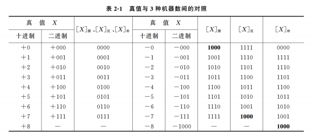 真值与三种机器数对照