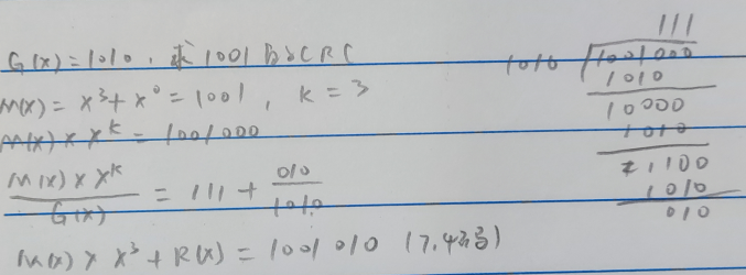 把 M(X)左 移 K 位,得到这样空出了K位,以便拼装 K 位余数。