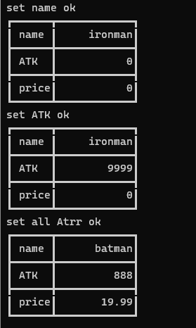 void setAtrr(Hero& hero, int ATK) { hero.ATK = ATK; cout << "set ATK ok" << endl; showAtrr(hero); }
