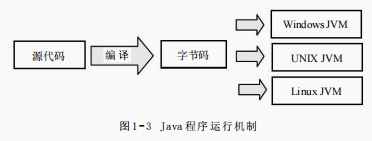 在Java编程中,源代码被编译成字节码 (bytecode)。字节码不是本地机代码,所以它不能直接运行。字节码只能在 Java 虚拟机上运行。 JVM 是一种解释字节码的本机应用程序。JVM 在众多平台上都可用,从而使 Java 成为一种跨平台的语言,进而实现“编写一次,到处运行”。
