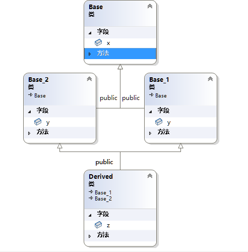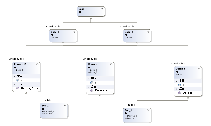 Base现在既是Derived的虚基类, 也是Base的虚基类Base_1的虚基类.