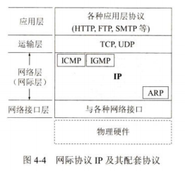 ARP画在最下面,因为IP经 网络层 IP (网际层) 常要使用这个协议。ICMP和IGMP画在这一层的上部,因为它们要使用协议IP。