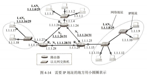 符号“:=”表示“定义为”, IP地址指明了连接到某个网络上的一个主机(或路由器)。