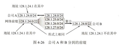因此,在采用CIDR编址时,如果一个分组在转发表中可以找到多个匹配的前缀,那么就应当选择前缀最长的一个作为匹配的前缀。这个原则称为最长前缀匹配(longest prefix match)。网络前缀越长,其地址块就越小,因而路由就越具体(more specific)。