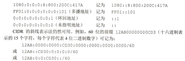 为了使地址再稍简洁些,IPv6使用冒号十六进制记法(colon hexadecimal notation,简写为colon hex),它把每个16位的值用十六进制值表示,各值之间用冒号分隔。