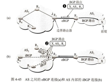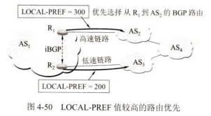 当以上几种方法都无法找出最好的BGP路由时,就可使用BGP标识符来选择路由。在BGP进行交互的报文中,其首部有一4字节的字段,叫作BGP标识符,记为BGP ID。这个字段被赋予一个无符号整数作为运行BGP的路由器的唯一标识符。具有多个接口的路由器有多个IP地址。BGPID就使用该路由器的IP地址中数值最大的一个。