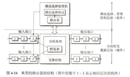 分组转发部分是是数据层面,它由三部分组成:交换结构、一组输入端口和一组输出端口