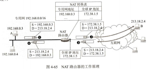 网络地址转换NAT(Network Address Translation)方法是在1994年提出的。这种方法需要在专用网连接到互联网的路由器上安装NAT软件.装有NAT软件的路由器叫作NAT路由器,它至少有一个有效的外部全球IP地址。这样,所有使用本地地址的主机在和外界通信时,都要在NAT路由器上将其本地地址转换成全球IP地址,才能和互联网连接。