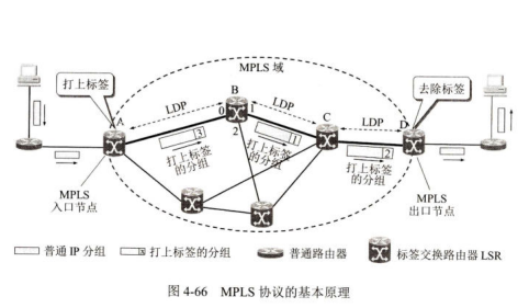 MPLS利用面向连接技术,使每个分组携带一个叫作标签(label)"的小整数(这叫作打上标签)。当分组到达交换机(即标签交换路由器)时,交换机读取分组的标签,并用标签值来检索分组转发表。这样就比查找路由表来转发分组要快得多。