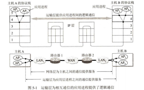 运输层提供应用进程间的逻辑通信。“逻辑通信”的意思是:从应用层来看,只要把应用层报文交给下面的运输层,运输层就可以把这报文传送到对方的运输层(哪怕双方相距很远,例如几千公里),好像这种通信就是沿水平方向直接传送数据。