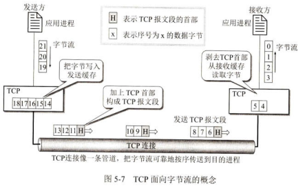 面向字节流。TCP中的“流”(stream)指的是流入到进程或从进程流出的字节序列。