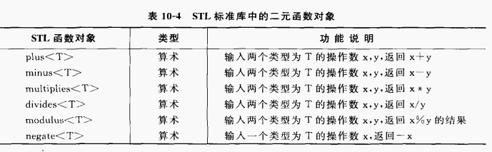 STL 中,定义了两个函数对象的基类 unary_function binary_function ,分别用于设计一元函数对象和二元函数对象。