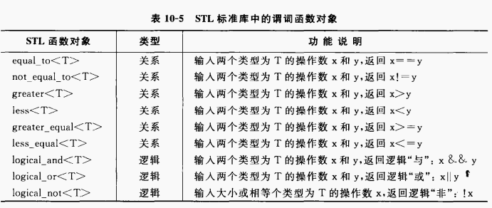 这种函数对象要求返回值为 bool 型,并具有一个或两个参数,称之为一元谓词或二元谓词函数对象。