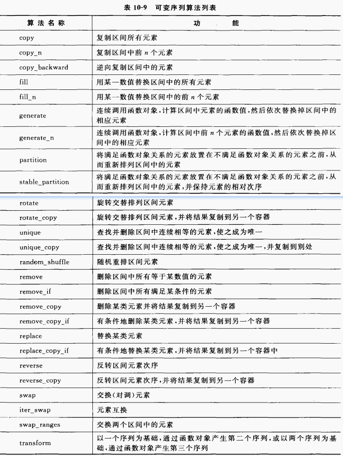 可变序列算法 (mutating algorithms) 可以修改它们所操作的容器的元素。