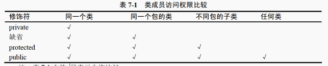 private只能类内访问; 缺省本类和同一个包中的类可以访问; protected 可以被这个类本身、同一