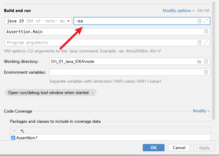 填入VM options: -ea(enable assertion), -da(disable assertion), apply应用即可.