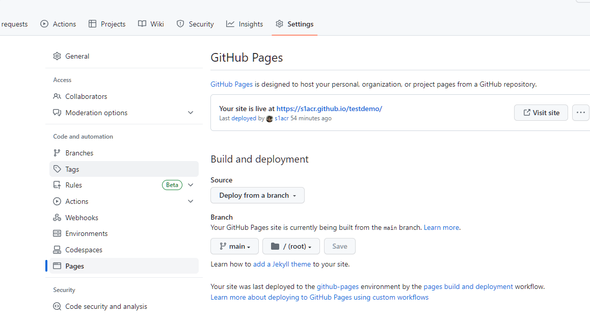 得到的网站会以 username.github.io/reponame/, 能直接从index.html进入, 现在还可以不以仓库根目录作为站点文件, 可以选择/docs 从而使项目展示页面和项目代码隔开.