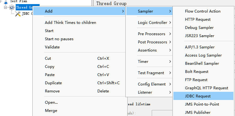 在TestPlan下添加mysql 的驱动jar包路径, 可以用mysql installer下载该驱动