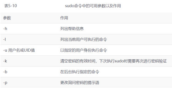 sudo命令用于给普通用户提供额外的权限,语法格式为: “sudo [参数] 用户名”。