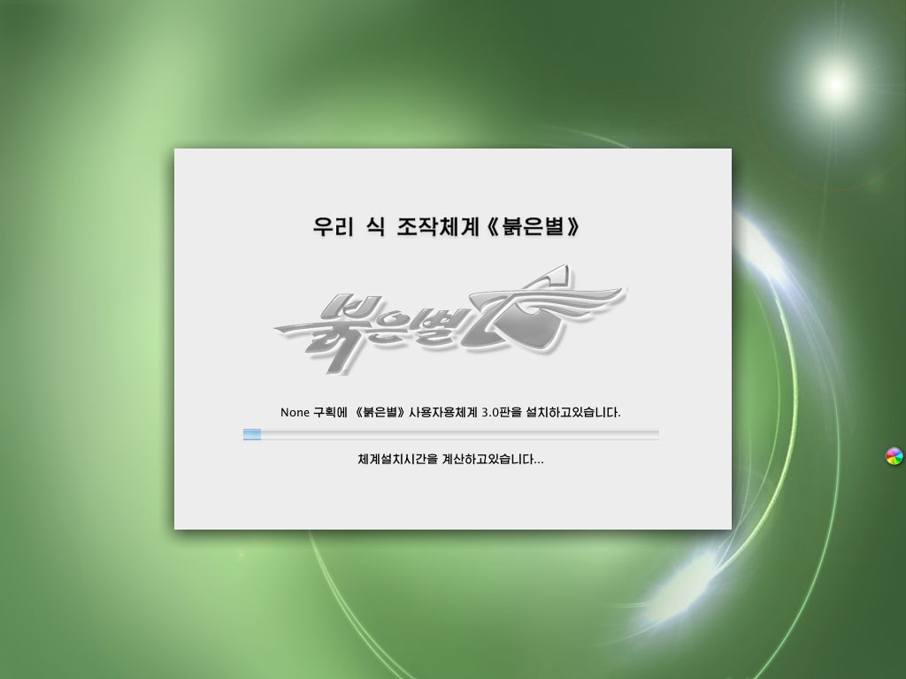看不懂朝鲜语. 凭着感觉点, 正常装系统的步骤.