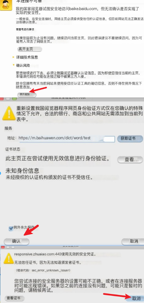 需要注意的, 每次打开一个网页需要你确认风险才可以正常打开:
