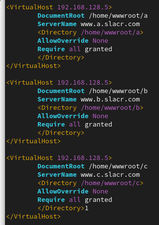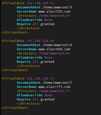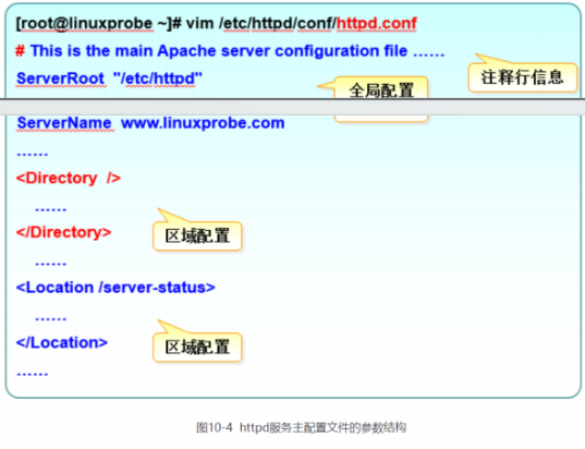 在httpd服务程序的主配置文件中,存在三种类型的信息:注释行信息、全局配置、区域配置