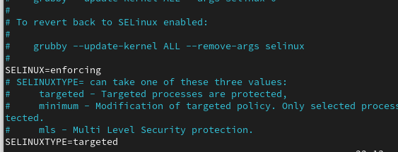 1 | vim /etc/selinux/config |