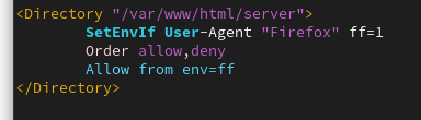 这段规则的含义是允许使用Firefox浏览器的主机访问服务器上的首页文件,除此之外的所有请求都将被拒绝。