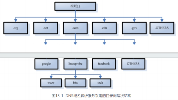 鉴于互联网中的域名和IP地址对应关系数据库太过庞大,DNS域名解析服务采用了类似目录树的层次结构来记录域名与IP地址之间的对应关系,从而形成了一个分布式的数据库系统