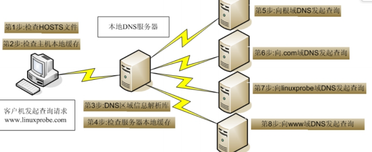 - 缓存服务器:通过向其他域名解析服务器查询获得域名与IP地址的对应关系,并将经常查询的域名信息到服务器本地,以此来提高重复查询时的效率。