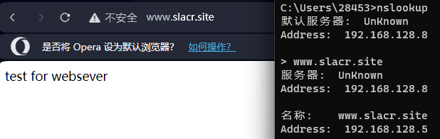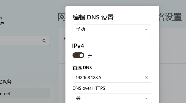 可以把主机的DNS地址也改成配置好的DNS服务器, 模拟一下其他设备访问DNS服务器