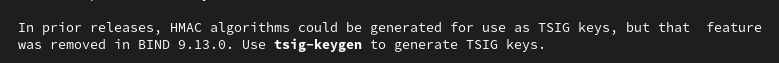 TSIG 传输签名的功能在 BIND 9.13.0 后已经被移到 tsig-keygen 命令中.