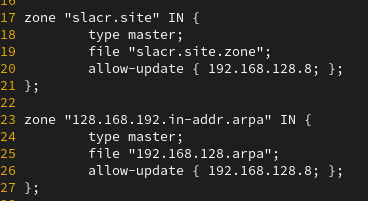- 配置区域配置文件, 允许从服务器更新, 主服务器记得把网卡dns地址设置成自己