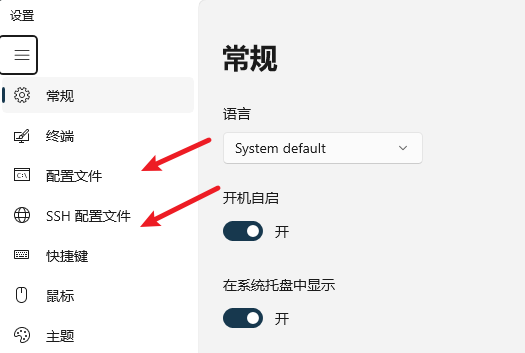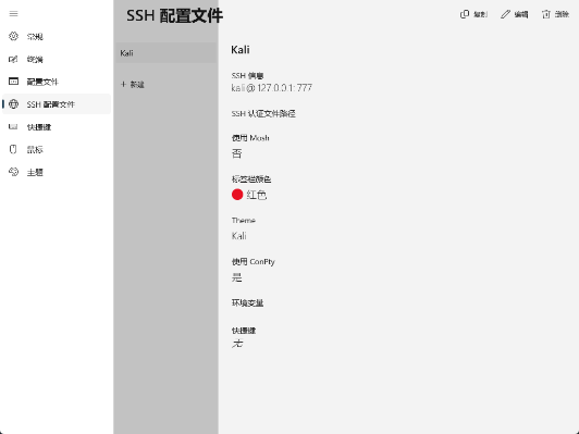 设置中有两个配置文件, 一个是SSH 配置, 一个是终端配置。