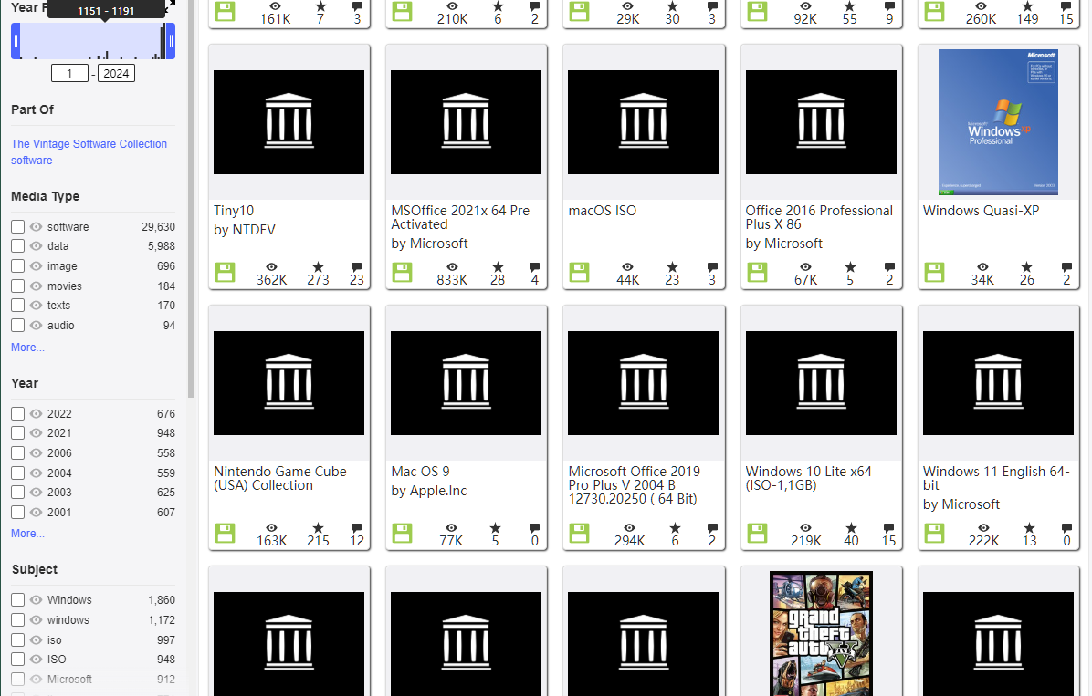 window镜像的下载可以在MSDN-itellyou、hello-window等下载纯净镜像, 或者Internet-Archive, 这个站点收录了很多镜像, 甚至还有盗版游戏。