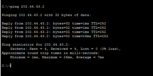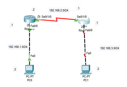 本次实验我熟悉了CiscoPacketTracer 的操作界面和思科IOS的基本配置命令,搭建了简单的网络拓扑并实现了不同局域网主机的通信。 路由项仅在R0和R1上各配置了一条静态的默认路由。需要注意的是,本次实验中,R0的s0/1/0接口上需要配置时钟频率, 因此需要使用Serial DCE的串口线, R0 作为DCE,R1作为DTE。