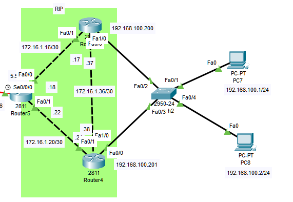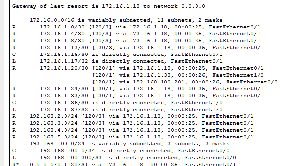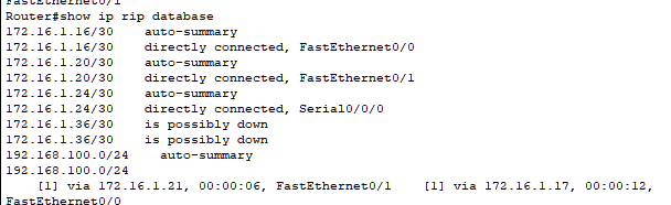 因为路由毒化的作用,Router3和Router4会马上将网络失效的信息告诉Router2,172.16.1.36/30网段随即变为is possibly down的状态。