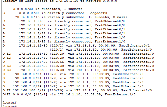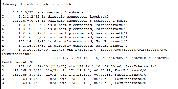 查看R0 路由表,成功通过OSPF学习到了左边的各个vlan网络的路由