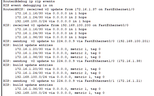 可以看到,Router4上面的开启rip的端口上都会收到和发送ripv2的数据包,其中包含许多详细报文信息,可以读取到路由的网段、下一跳、跳数、接收接口等信息。