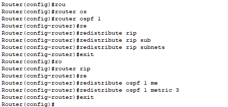 在R5 的RIP进程中引入OSPF 路由, 跳数设置为3; OSPF进程中引入RIP路由, 并将子网信息同时引入
